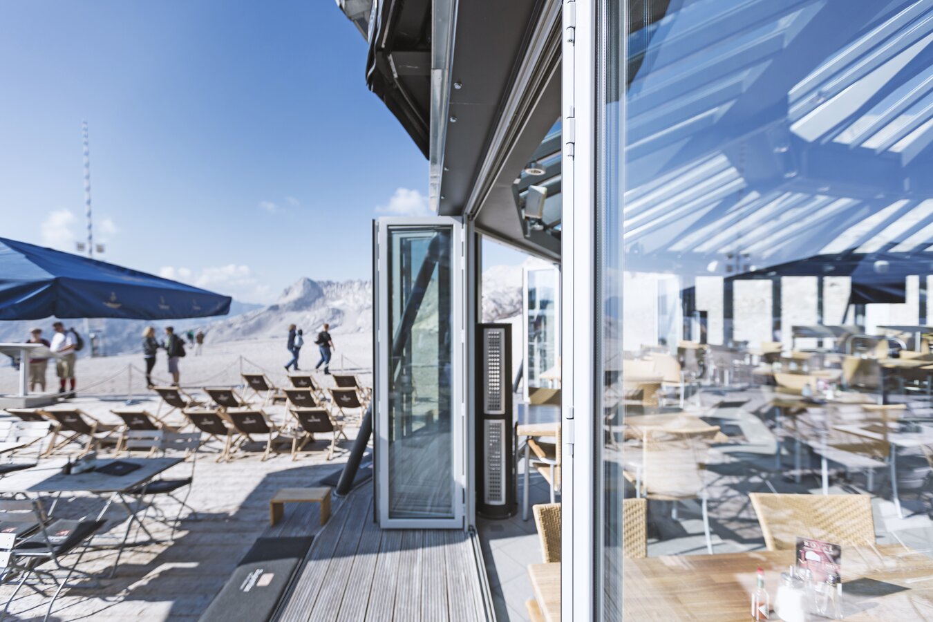 Glas und Stahl, Holz und Schiefer, Licht, Luft und Leichtigkeit: Wenn Sie einen exklusiven Rahmen mit optischen Highlights schätzen, werden Sie sich im modernen Glaspavillon am Zugspitzplatt mit Blick auf Gletscher und Berge rundum wohlfühlen. Dank der beweglichen Dachkonstruktion können Sie mit Ihren Gästen ohne Platzwechsel unter freiem Himmel weiterfeiern!