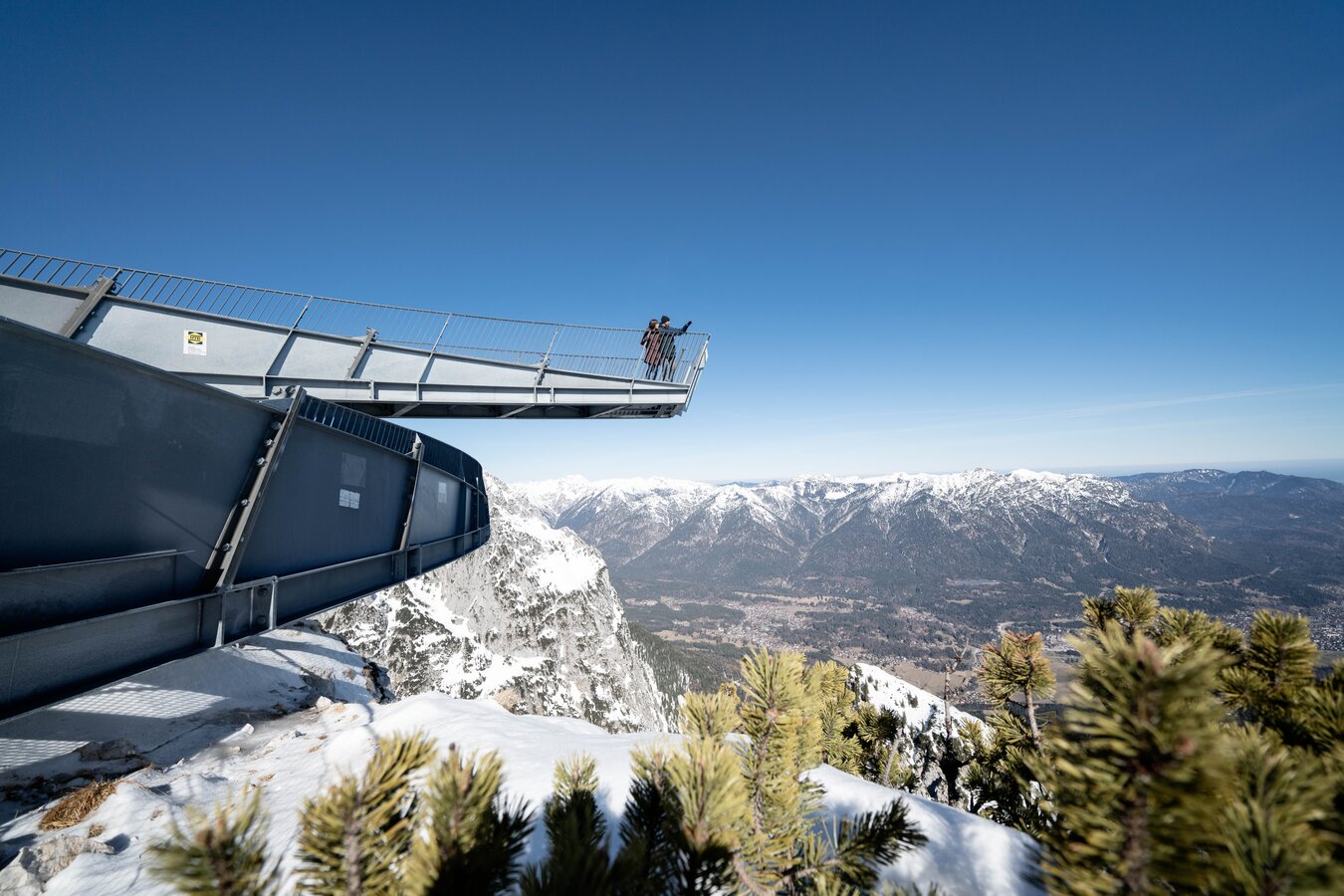 Im Garmisch-Classic Ticket ist nicht nur die Fahrt mit drei Bergbahnen inkludiert. Bei der Bergstation der Alpspitzbahn wartet auf der Panoramaplattform AlpspiX eine einmalige Aussicht auf Besucherinnen und Besucher.