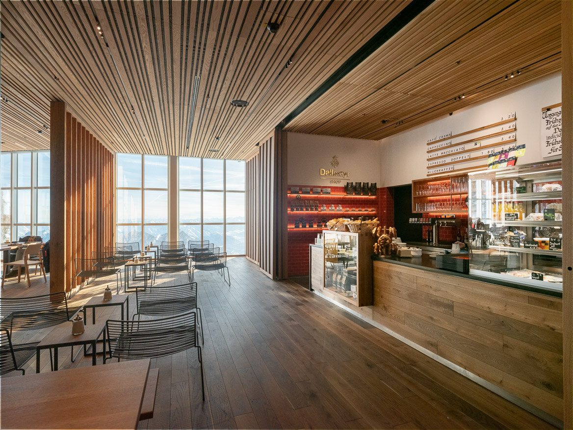The summit restaurant at almost 3,000 metres above sea level combines culinary delights with breathtaking views. The selection of specialities from Italy, Austria, Switzerland and Germany is eponymous for the establishment’s motto: “The best from 4 countries.”